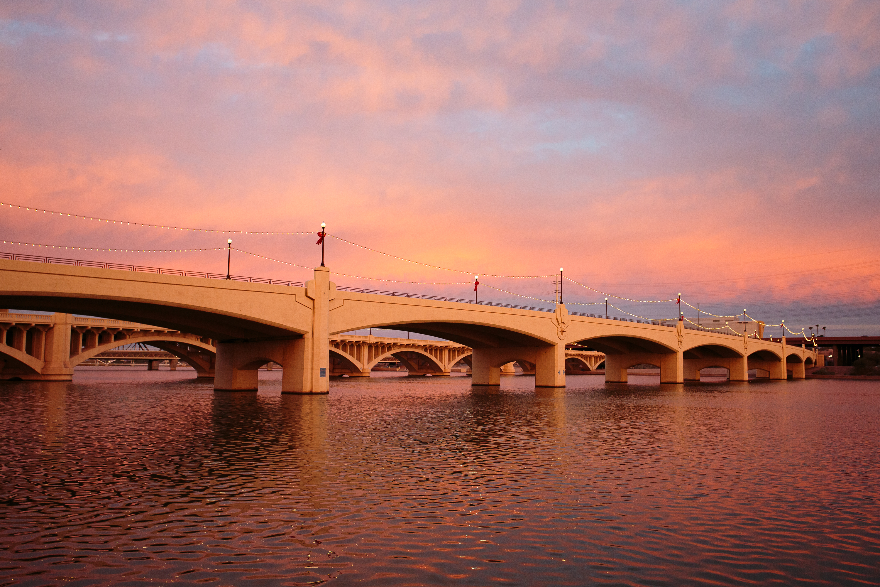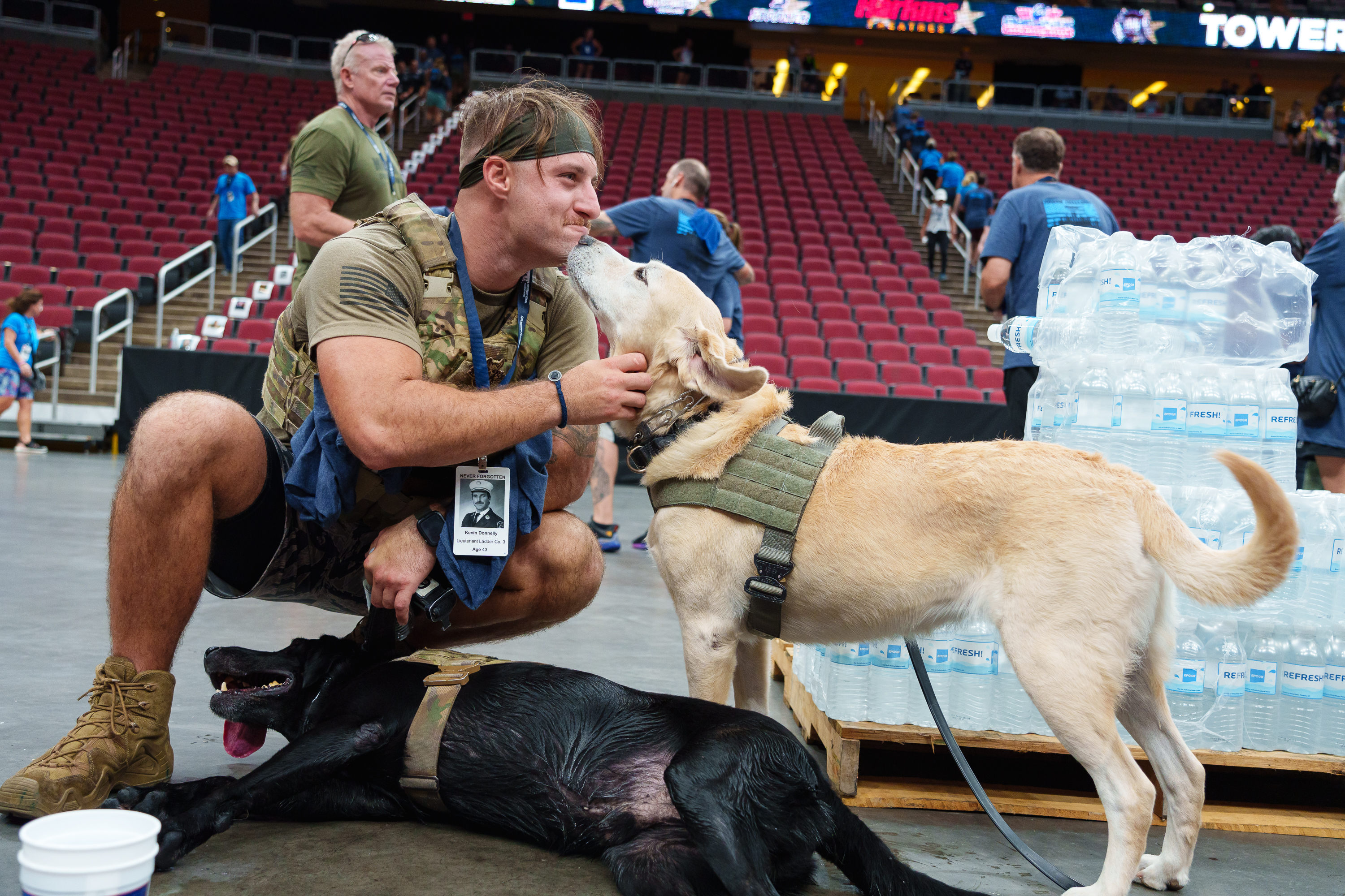 Jan 8, 2022; Tempe, AZ; The sun rises over Tempe Town Lake and the Old Mill Avenue BridgeParticipants watch video footage from the 9/11 terrorist attacks at the opening ceremonyA firefighter walks past photographs of 9/11’s fallen first respondersMilitary working dog trainer, Dakota Farrow, pets two dogs from the K9 unit after they all finish climbingMarine Corps Junior ROTC climb the steps of Gila River ArenaParticipants climb the steps of the upper and lower levels of Gila River Arena to complete the 9/11 Tower Challenge on Sep 10, 2022 in Glendale, AZ.