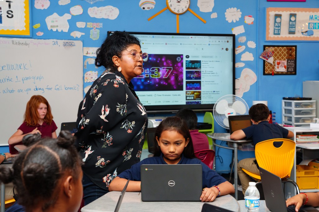 Rebecca Rivera teaches a class of fourth and fifth grade students at Stanfield Elementary school on Sep. 29, 2022 in Stanfield, AZ. The school is experiencing a teacher shortage and is currently looking to fill 3 teaching positions and 1 school counselor position for the 2022-2023 school year.