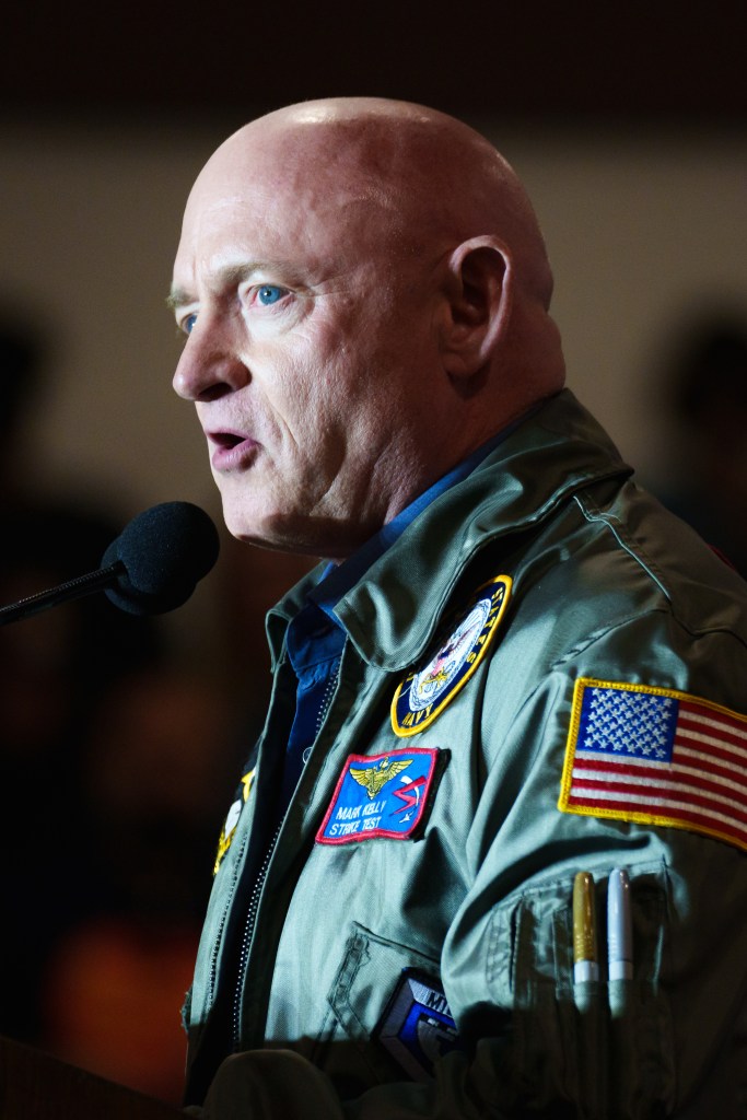 United States Sen. Mark Kelly of Arizona, seeking re-election, speaks at a campaign rally at Cesar Chavez High School on Nov. 2, 2022 in Phoenix, AZ.