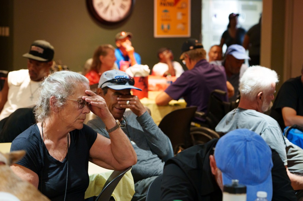 K.C. Griffin (Left) sits in a crowded room at Justa Center, one of the valleyÕs many cooling centers during a heat wave on July 16, 2023 in Phoenix, AZ.