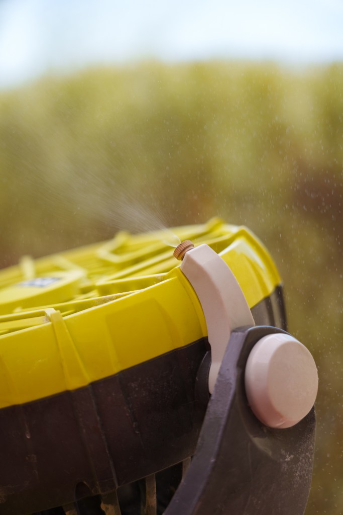 A fan and mister sits outside the door of one of the valley cooling centers, the Salvation Army location at Myrtle Avenue and University Drive on July 16, 2023 in Tempe, AZ.