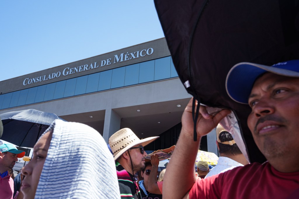 Voters wait in hours-long lines outside the Mexican Consulate in Phoenix, Ariz. to vote on Mexico’s Election Day on June 2, 2024 in Phoenix, Ariz.