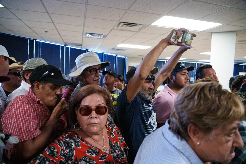 A crowd of upset voters push through the doors of the Mexican Consulate in Phoenix, Ariz. as the end of voting quickly approaches and time winds down on Mexico’s Election Day on June 2, 2024 in Phoenix, Ariz.