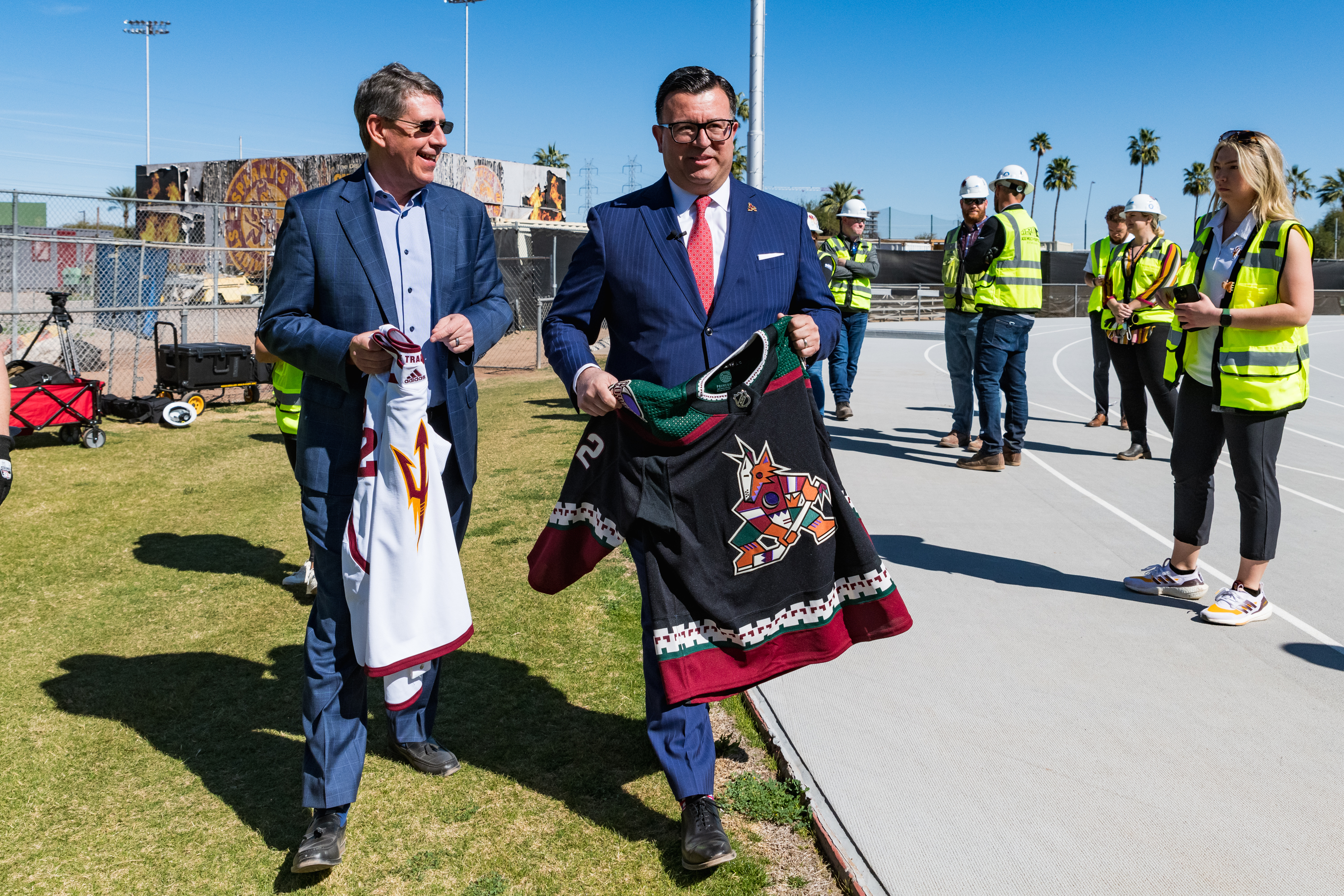 Arizona Coyotes host press conference where they are contracted to play for three years starting at the end of 2022 at ASU’s Multipurpose Arena on Feb 14, 2022 in Tempe, AZThe Coyotes have their first practice in Mullett Arena at ASU’s Tempe Campus on Oct. 27, 2022.