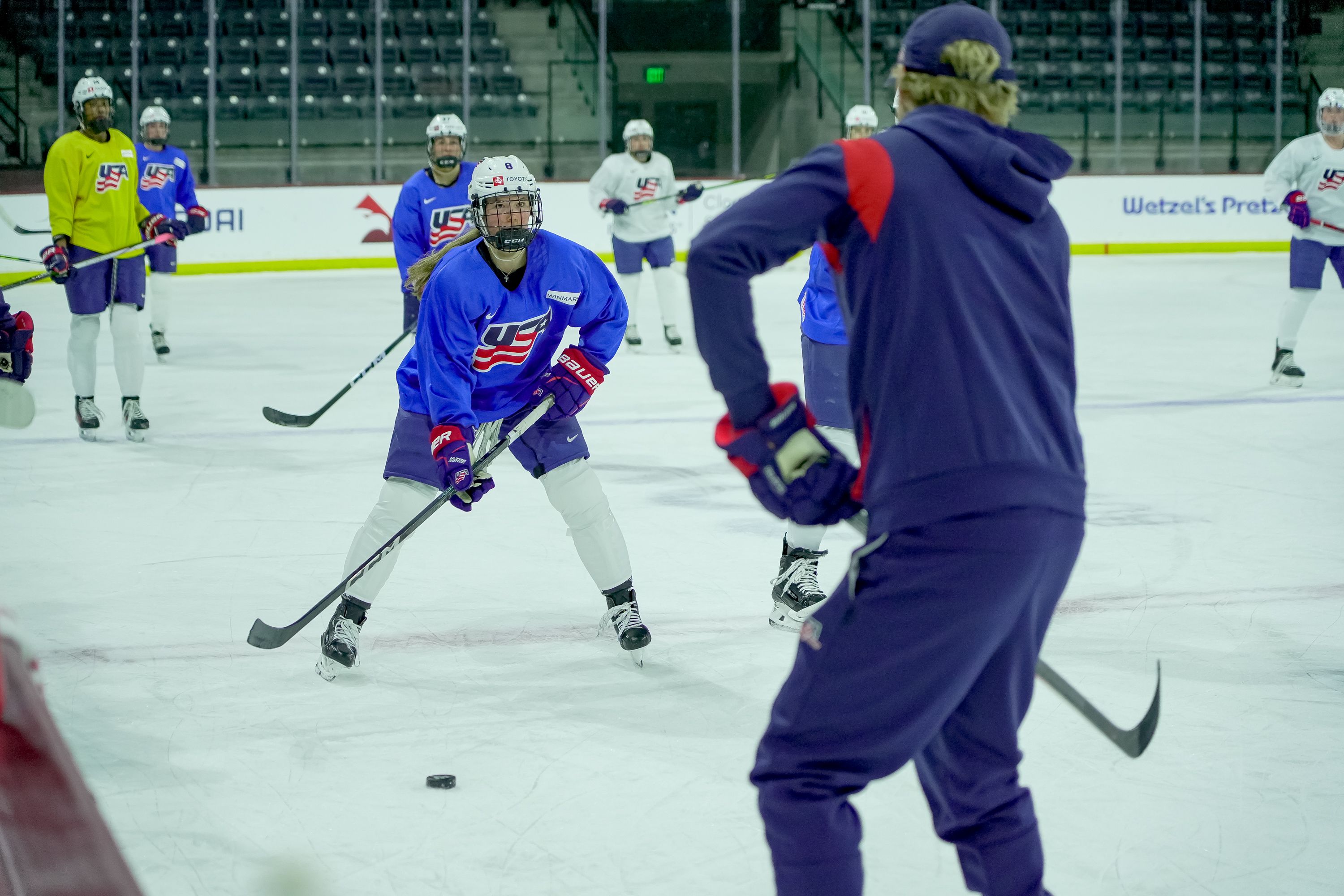 Team USA Women’s Hockey practices at Mullett Arena on Nov. 6, 2023, in Tempe, AZ. The team prepares to play Canada at Mullett Arena on Wed., Nov. 8 for the 2023-24 Rivalry Series.