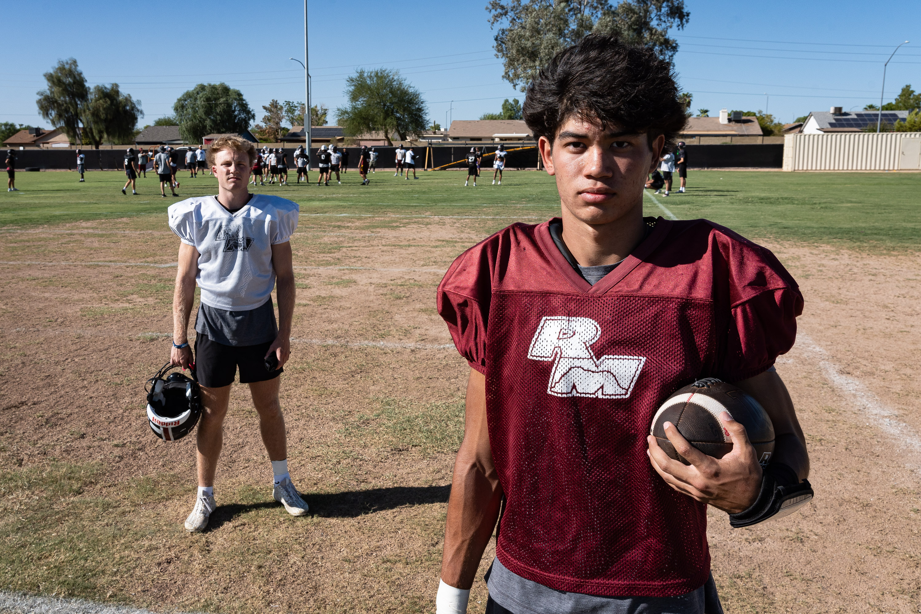 Northwest Christian wins the 3A Baseball State Championship at Tempe Diablo Stadium on May 15, 2023 in Tempe, AZ.Snowflake celebrates their victory after the 3a Football Championship game against Yuma Catholic High School on Nov 27, 2021 in Gilbert, AZ.Head coach Barbara Chura leads varsity soccer practice at Xavier College Preparatory on Jan. 4, 2024, in Phoenix, AZ.Red Mountain High School seniors, wide receiver Bode Wagner (11) and quarterback Simon Lopez (14), Sept. 18, 2024, in Mesa, Ariz.